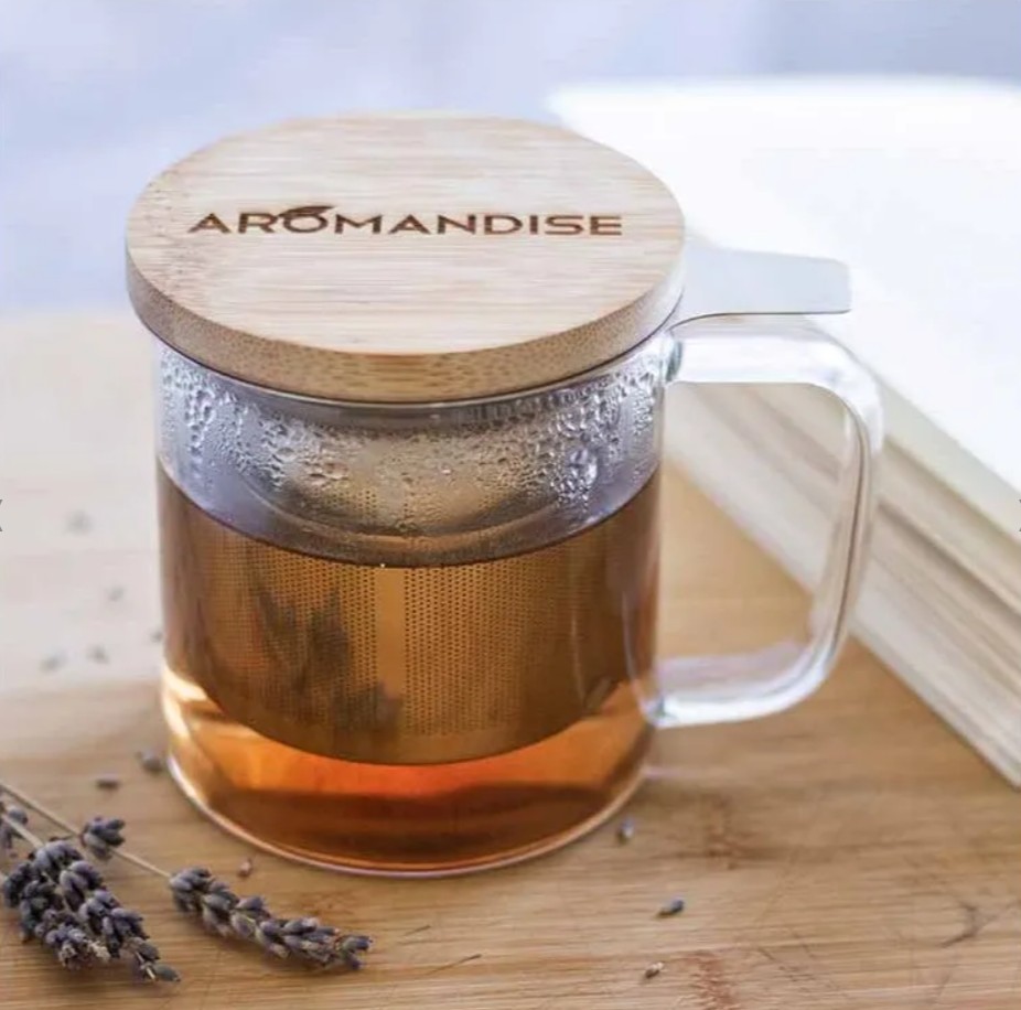 Aromandise, Borosilicate Glass Mug with Lid & Integrated Filter, 0.35L