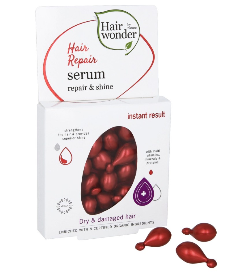 Hair Wonder Hair Repair Serum are ultra-concentrated leave-in hair serum capsules, enriched with multivitamins, protein and minerals, including Horse Chestnut, Vitamin A, Vitamin E, Vitamin B8, Vitamin B5, Vitamin F and Vitamin H, along with Senna (colourless henna).