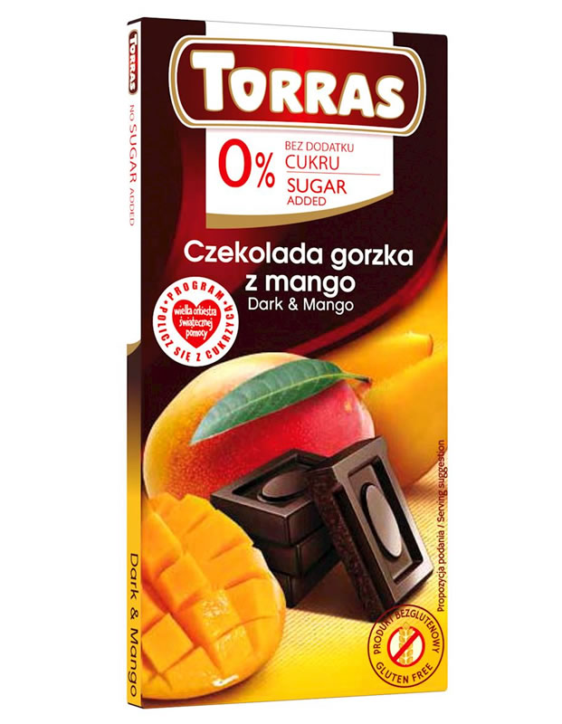 Gluten-free dark chocolate with mango is perfect as a snack. The combination of dark chocolate and sweet mango makes each cube melt in your mouth. Contains sweetener. Contains naturally occurring sugars. Excessive consumption may have a laxative effect.